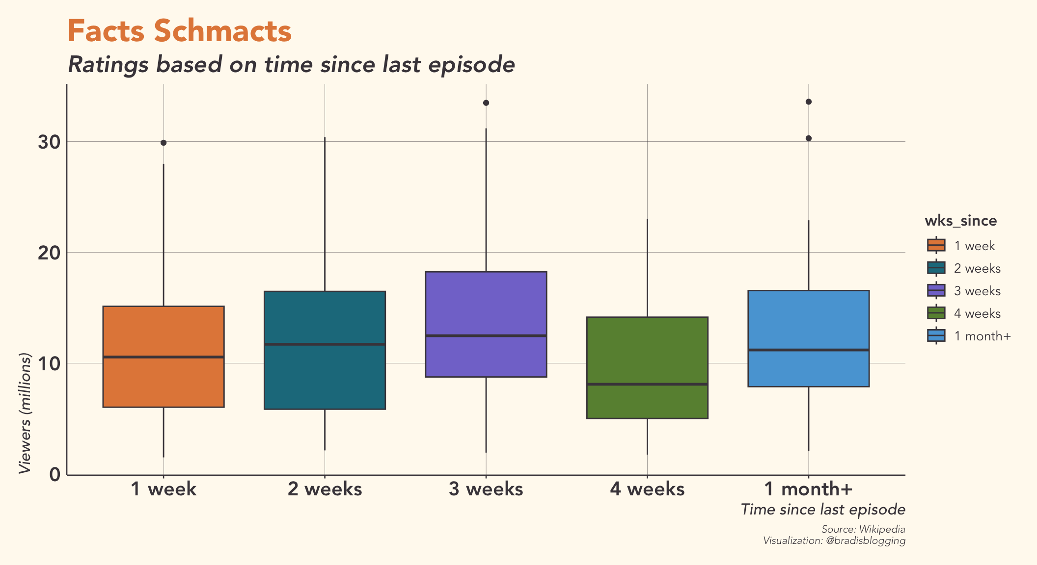 Ratings do seem to improve with a 3 week hiatus before the episode airs, but if it was as simple as long breaks upping viewership, there wouldn’t be a drop off for a 4 week/month long hiatus. Maybe 3 weeks is that sweet spot between “Oh, right The Simpsons hasn’t been on in a while!” and “Have they finally canceled The Simpsons?”